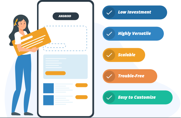 We offer the most efficient customized android app development services based on your bespoke needs. Our team of Android app developers and UI/UX designers are skilled in building feature-rich Android app which becomes highly scalable, stunning, and user-friendly, and rich in functionalities. If you are looking for a custom android app for your small business or a complex corporate app for your large business, we ensure you deliver the most successful app development services.